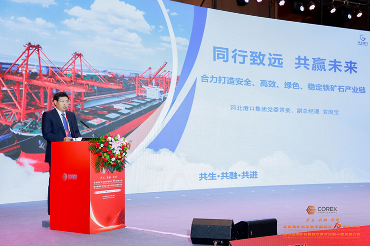 河北港口集團黨委常委、副總經理宣國寶做《同行致遠、 共贏未來,合力打造安全、高效、綠色、穩定鐵礦石產業鏈》主題演講。他介紹了河北港口集團建設運營及鐵礦石業務情況,包括在加強鐵礦石裝卸倉儲保障能力、鐵礦石集疏運、拓展鐵礦石供應鏈條等方面的重要進展。