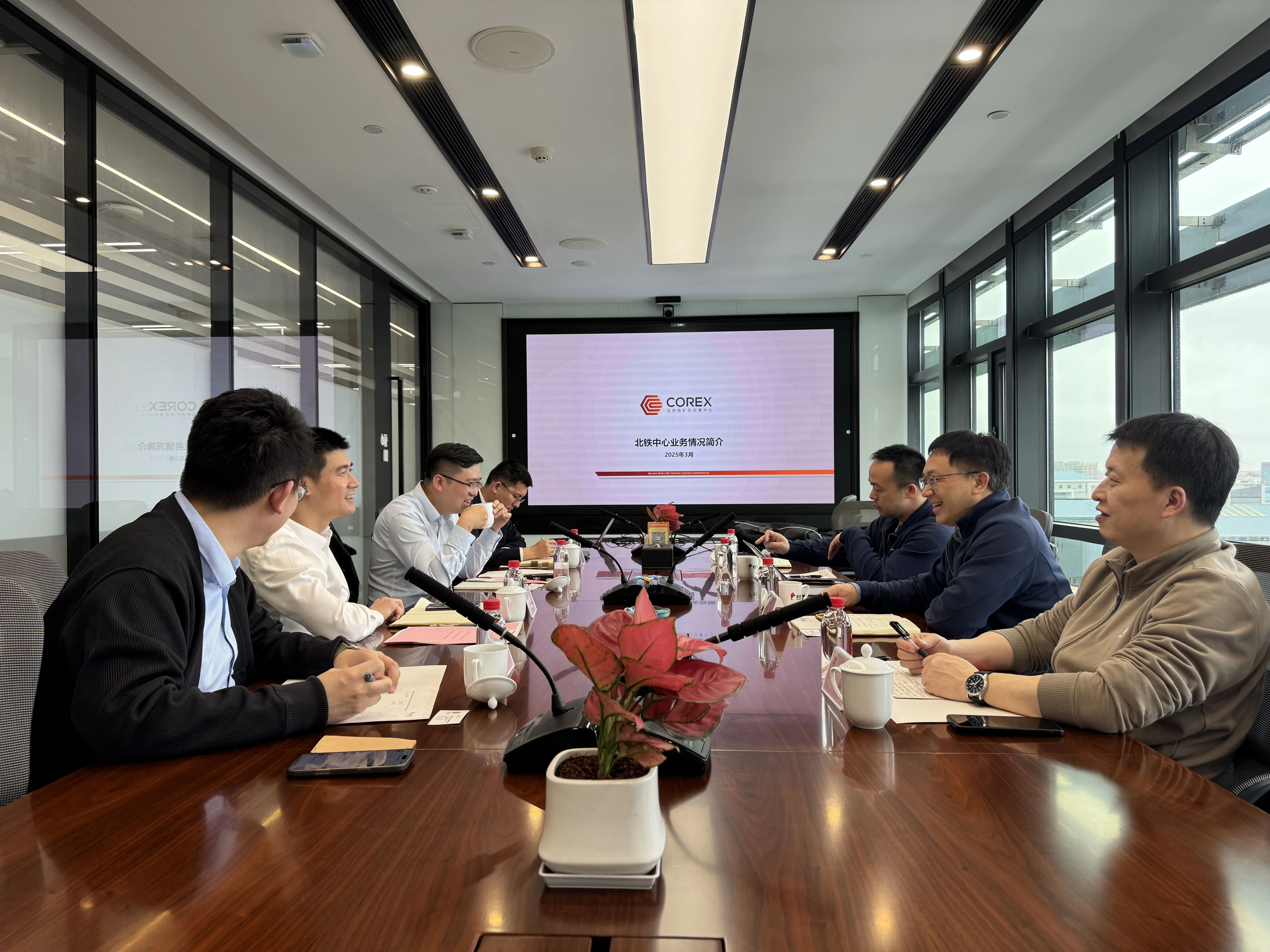 近日,北京鐵礦石交易中心(以下簡稱北鐵中心)執行董事、總裁游松帶隊赴廈門國貿集團股份有限公司(以下簡稱國貿股份)和廈門嶼豐礦產有限公司(以下簡稱嶼豐礦產),與國貿股份黨委委員、副總裁榮坤明,國貿股份鐵礦業務集群首席商務經理、鐵礦資源采購部總經理李鵬,廈門象嶼股份有限公司副總經理鄭蘆魚,嶼豐礦產總經理何玉龍等座談交流。北鐵中心副總裁、董事會秘書陸昊等參加會議。