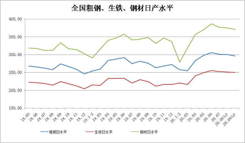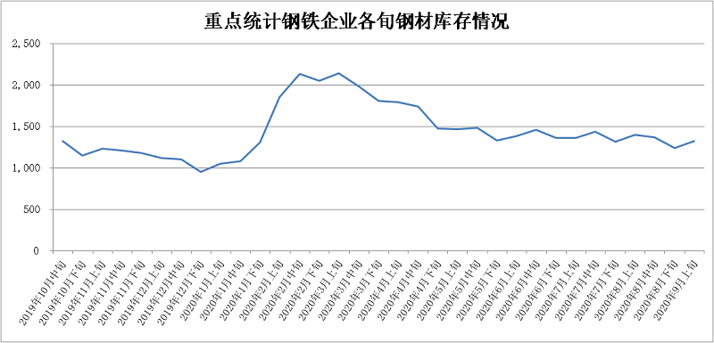 2020年9月上旬,重點統計鋼鐵企業共生產粗鋼2136.56萬噸、生鐵1896.16萬噸、鋼材1999.30萬噸、焦炭319.28萬噸。本旬平均日產,粗鋼213.66萬噸,環比下降1.09%、同比增長6.73%;生鐵189.62萬噸,環比下降1.55%、同比增長4.82%;鋼材199.93萬噸,環比下降8.86%、同比增長6.50%。