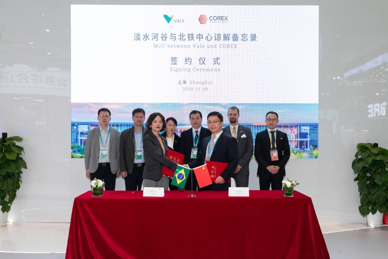 11月9日,第三屆中國國際進(jìn)口博覽會期間,北鐵中心總裁游松和淡水河谷金屬(上海)總裁謝雪代表雙方公司簽署了諒解備忘錄,中國鋼鐵工業(yè)協(xié)會副秘書長王穎生與北京市石景山區(qū)商務(wù)局局長呂松濤見證簽約。