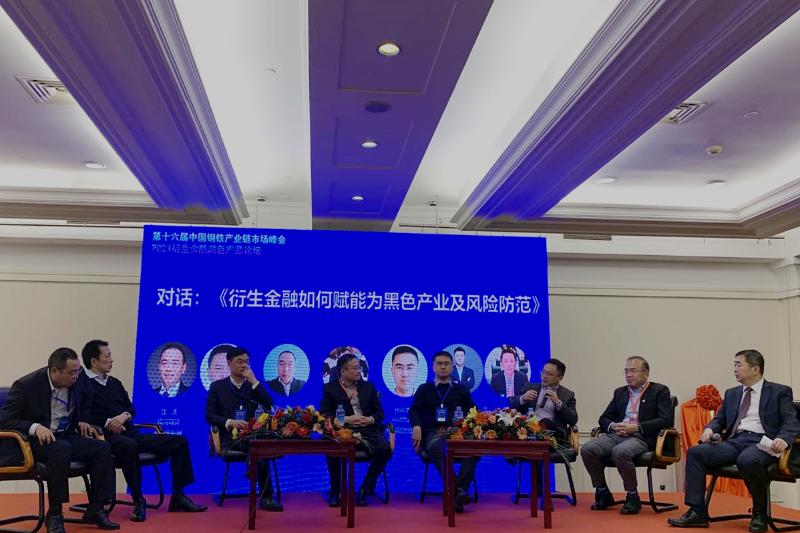 在圓桌對話環節,北鐵中心總裁游松、銀河期貨總經理助理錢濤、敬業集團期貨部部長閆艷朝、日照大宗商品交易中心總經理馮益朋、物元實業董事長曹勝、杭州熱聯股份有限公司總經理助理任尚華、鋼鋼好電子商務有限公司董事長董向軍等圍繞“黑色產品期貨及場外交易的創新發展”這一主題進行了觀點交流與碰撞,衍生金融50人論壇秘書長馮博主持本次對話。與會嘉賓解讀國內外經濟形勢,剖析黑色產品期貨發展,從黑色產品期貨現狀、期貨市場對行業企業的積極意義等方面展開了廣泛交流,并對黑色產品期貨市場如何高質量發展提出了建議和期許。
