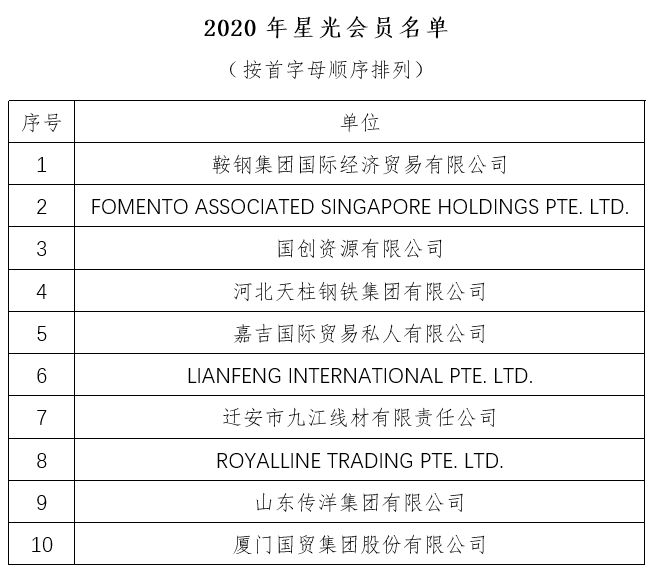 2020年,北鐵中心交易量突破6200萬噸,在疫情中實(shí)現(xiàn)了逆勢(shì)跨越增長(zhǎng)。北鐵中心的成績(jī)離不開廣大會(huì)員單位的鼎力支持和積極參與,根據(jù)會(huì)員交易情況和業(yè)務(wù)參與度,現(xiàn)決定授予10家會(huì)員單位“2020年卓越會(huì)員”榮譽(yù)稱號(hào),10家會(huì)員單位“2020年星光會(huì)員”榮譽(yù)稱號(hào)。