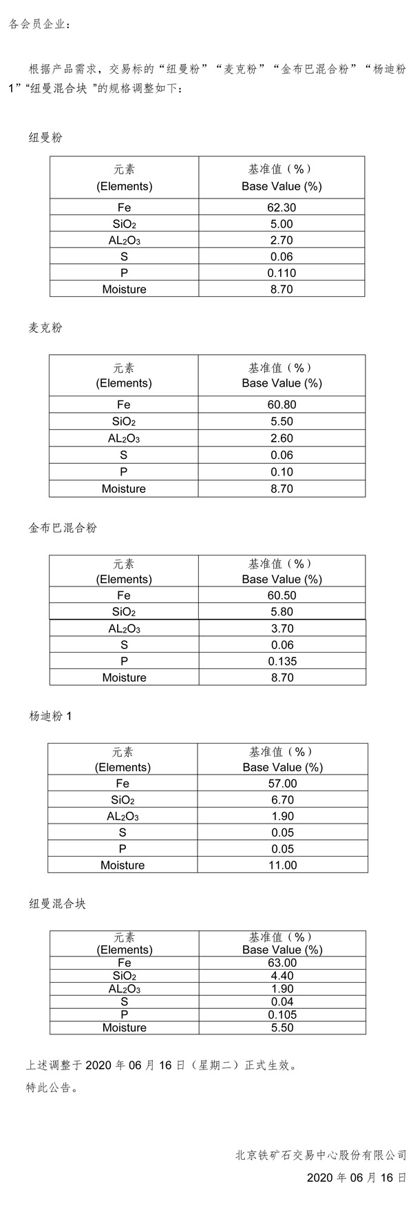 關于修訂《北京鐵礦石交易中心鐵礦石現貨浮動定價交易實施辦法》的公告