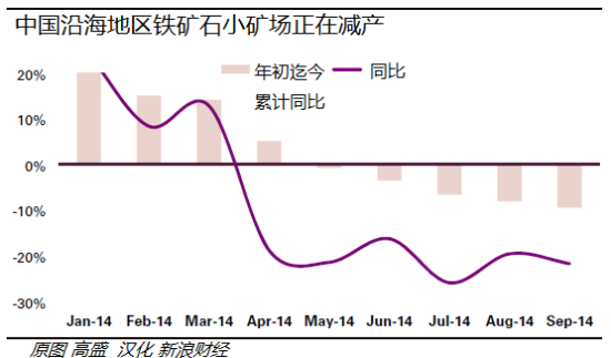 高盛對鐵礦石2015年均價的預測值為每噸80美元。不過高盛分析師指出,這一預測基于兩個假設,一是隨著內外價差收窄,中國鐵礦石產商將繼續減產;二是在中國以外地區,邊際產出繼續對價格保持敏感、礦場關停會以及時的方式發生。