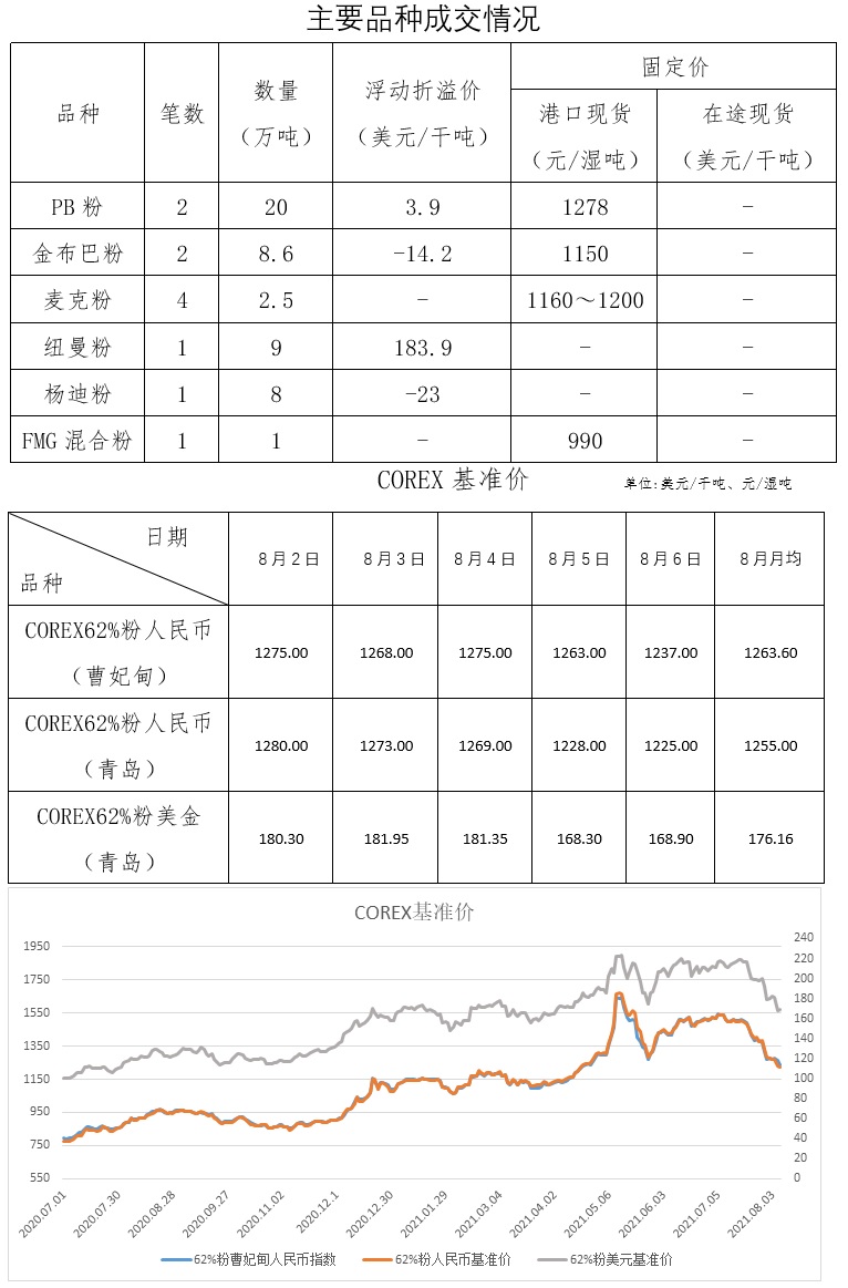 8月2日-8月6日成交16筆共53.6萬噸,其中在途4筆42萬噸,港口12筆11.6萬噸。