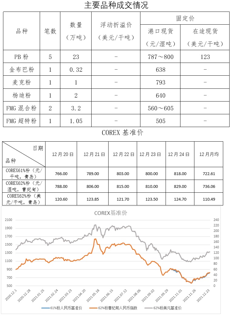 12月20日-12月24日成交20筆共43.37萬噸,其中在途1筆17萬噸,港口19筆26.37萬噸。