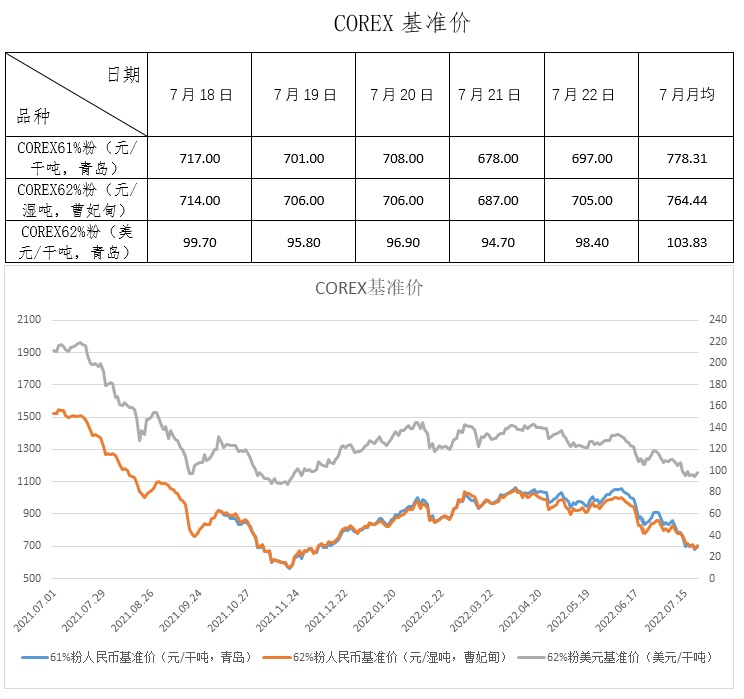 7月18日-7月22日成交74筆共149.24萬噸,其中在途6筆共90萬噸,港口68筆共59.24萬噸。主要成交品種包括:PB粉15筆共83.75萬噸,麥克粉11筆共10.29萬噸,FMG混合粉7筆共8.18萬噸,金布巴粉4筆共4萬