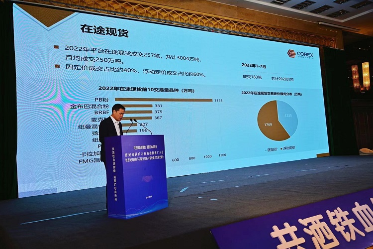 曹妃甸現(xiàn)代供應(yīng)鏈科技有限公司董事長高峽重點(diǎn)介紹了公司從搭建礦石專業(yè)化服務(wù)平臺、供應(yīng)鏈金融服務(wù),現(xiàn)代物流服務(wù)等方面對企業(yè)鐵礦石業(yè)務(wù)的支持。